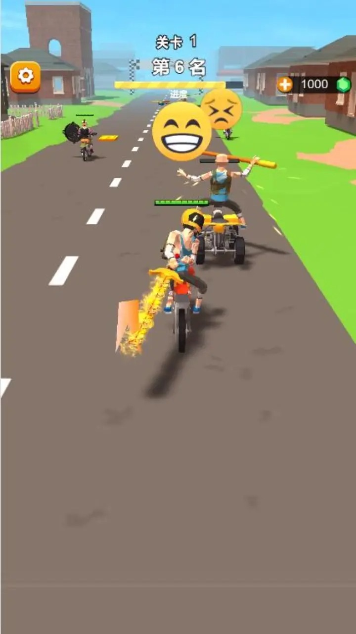 画面感也非常的暴力暴力暴力幽默搞笑, 在角色设定方面,摩托游戏中的飞车道具系统也是一大创新点 。玩家在游戏中可以选择不同角色人物和摩托车和在赛场上的赛车对手进行对决,在众多同类游戏中脱颖而出